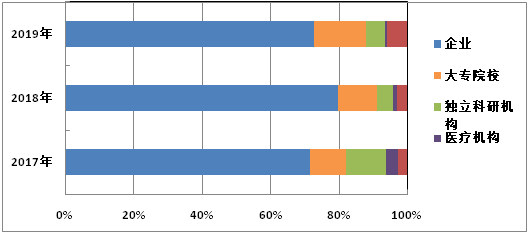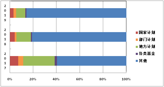 图4 湖南省2017-2019年登记科技成果任务来源分布对比