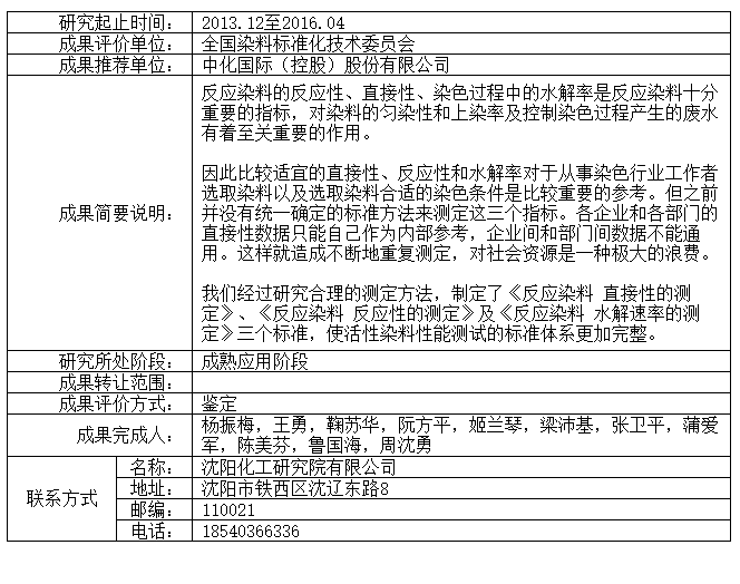 反应染料应用性能系列国家标准的研究