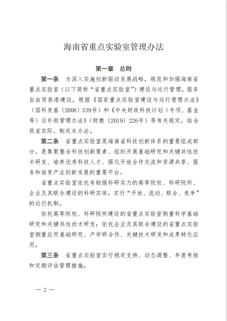 海南省科学技术厅关于印发《海南省重点实验室管理办法》的通知