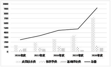 按照成果类别,可将科技成果划分为应用技术类、软科学类和基础理论类三种。如图1所示,2020年度登记的非涉密成果中,应用技术类科技成果共718项,占比78.1%,比2019年度增加373项;基础理论类科技成果共124项,占比13.5%,比2019年度增加25项;软科学类科技成果共77项,占比8.4%,比2019年度增加43项。
