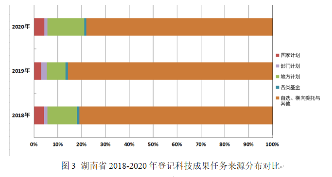 表3 湖南省2018-2020年登记科技成果任务来源分布