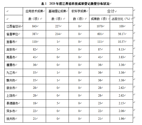 2020年度江西省科技成果登记统计分析报告
