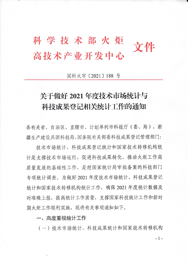 关于做好2021年度技术市场统计与科技成果登记相关统计工作的通知