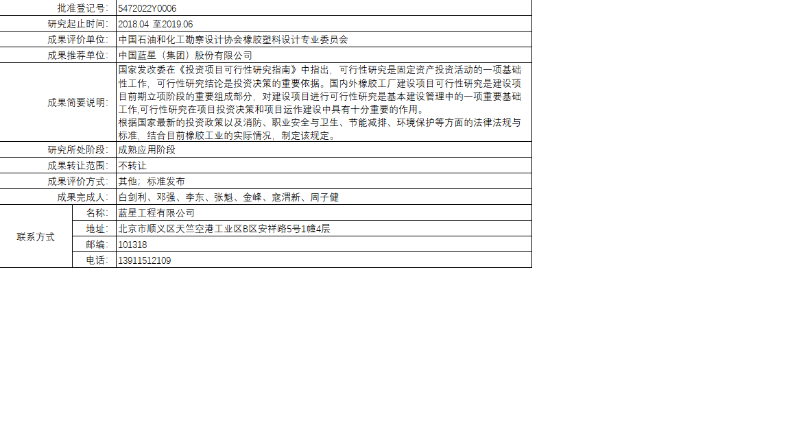 HG/T 20722-2019《橡胶工厂建设项目可行性研究报告内容和深度规定》