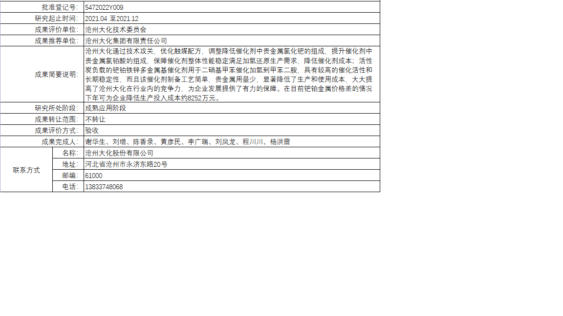 根据中国中化控股有限责任公司科技成果登记管理办法,按照科技成果管理程序,现将中国中化控股有限责任公司登记的成果予以公告。对公告上登记的科技成果内容持有异议者,可与中国中化控股有限责任公司科技成果登记中心联系。其管理有效期(自公告之日起)为期7天。