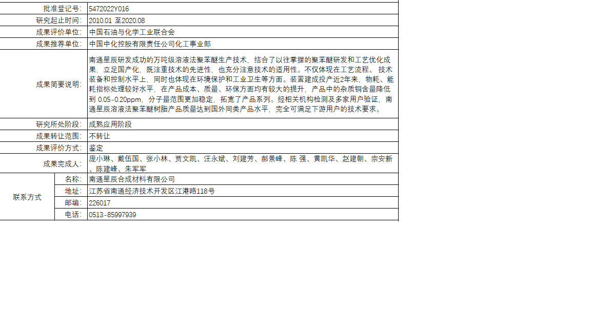 万吨级溶液法聚苯醚(PPE)生产技术开发与应用