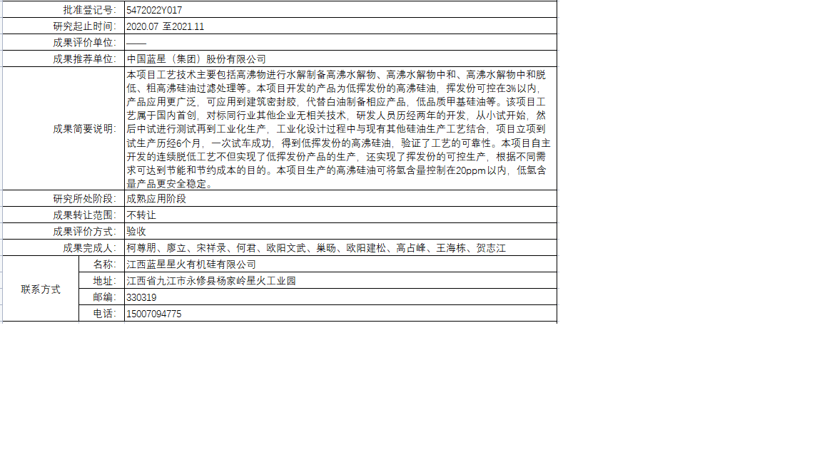 根据中国中化控股有限责任公司科技成果登记管理办法,按照科技成果管理程序,现将中国中化控股有限责任公司登记的成果予以公告。对公告上登记的科技成果内容持有异议者,可与中国中化控股有限责任公司科技成果登记中心联系。其管理有效期(自公告之日起)为期7天。