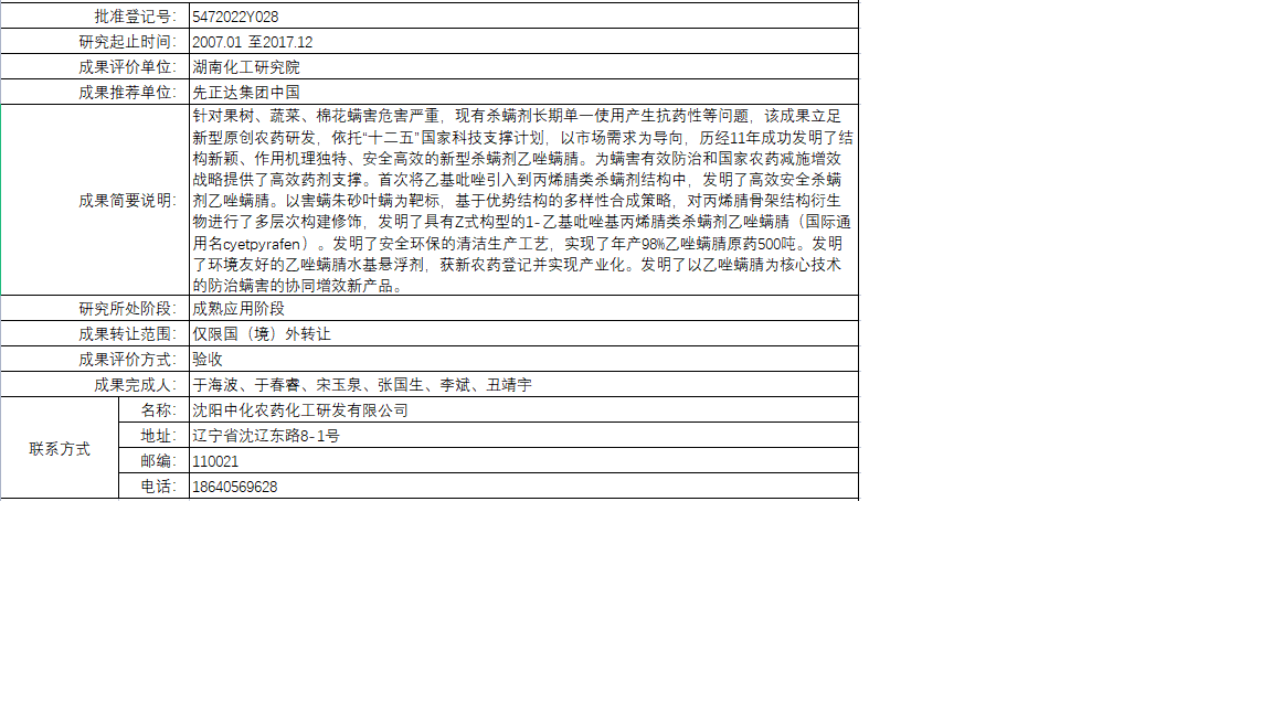 安全高效创制杀螨剂乙唑螨腈的研究开发