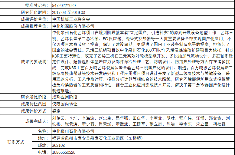根据中国中化控股有限责任公司科技成果登记管理办法,按照科技成果管理程序,现将中国中化控股有限责任公司登记的成果予以公告。对公告上登记的科技成果内容持有异议者,可与中国中化控股有限责任公司科技成果登记中心联系。其管理有效期(自公告之日起)为期7天。