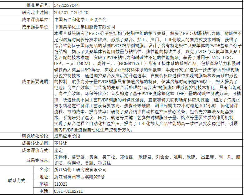 锂离子电池用高性能聚偏氟乙烯研制及产业化