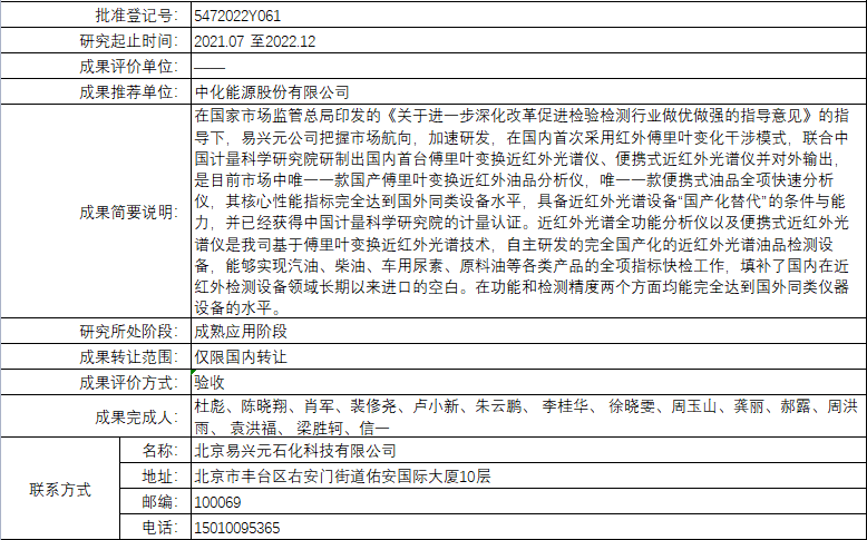 根据中国中化控股有限责任公司科技成果登记管理办法,按照科技成果管理程序,现将中国中化控股有限责任公司登记的成果予以公告。对公告上登记的科技成果内容持有异议者,可与中国中化控股有限责任公司科技成果登记中心联系。其管理有效期(自公告之日起)为期7天。