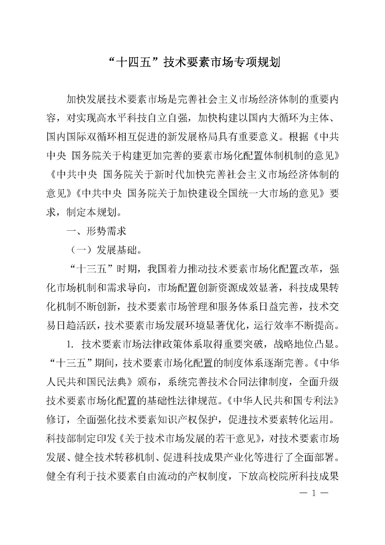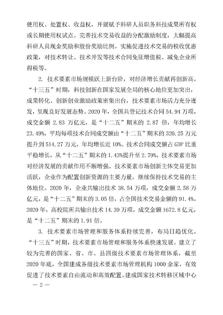 科技部关于印发《“十四五”技术要素市场专项规划》的通知
