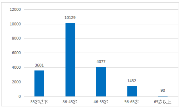 35岁以下(含35岁)3601人次,占总数的18.63%;36-45岁10129人次,占总数的52.40%;46-55岁4077人次,占总数的21.09%;56-65岁1432人次,占总数的7.41%;65岁以上的90人次,占总数的0.47%(见图6)。2022年河北省科技成果完成人的年龄结构主要以55岁以下为主,其中36-45周岁的成为完成人的主力军。