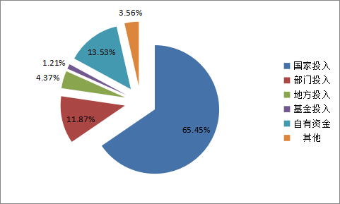 登记的299科技成果中,经费实际投入额48279万元。其中国家投入31600万,占投资总额65.47%;部门投入5731万,占投资总额11.87%。地方投入2110万,占投资总额4.37%;由项目申报单位投入自有资金6533万,占投资总额13.53%,其他资金投入1720万,占投资总额3.56%;基金投入585万,占投资总额1.21%。