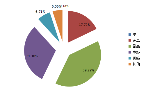 在登记人员职称构成方面,院士5人,占全部人员0.13%;正高级职称660人次,占全部人员17.72%;副高职称1463人次,占全部人员39.29%;中级职称1158人次,占全部人员的31.10%;初级职称250人次,占全部人员的6.71%;其他人员188人次,占全部人员的5.05%。从职称构成上看,高级、副高级、中级人员是科研的中坚力量。