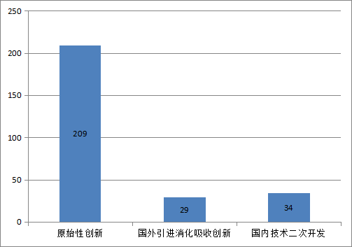 从成果创新属性上来看,2021年度登记的科技成果中可统计数共272项,其中,原始性创新成果共209项,占可统计数据的76.84%;国外引进消化吸收创新成果为29项,占可统计数据的10.66%;国内技术二次开发的成果为34项,占可统计数据的12.50%。因此,科技成果多数为原创性成果。