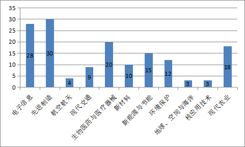 登记的272项科技成果中,统计到152项成果归属技术领域,其中电子信息领域成果28项,先进制造领域成果30项,现代交通领域成果4项,生物医药与医疗器械领域成果20项,新材料领域成果10项,新能源与节能领域成果15项,环境保护领域成果12项,地球、空间与海洋成果3项,核应用技术领域成果3项,现代农业领域成果18项。
