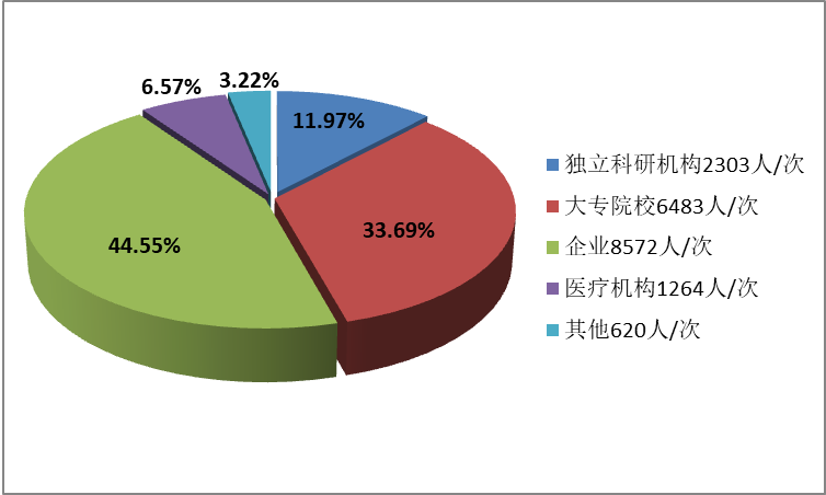 大专院校 6483人/次,占本年度成果完成人员总数的 33.69 %;