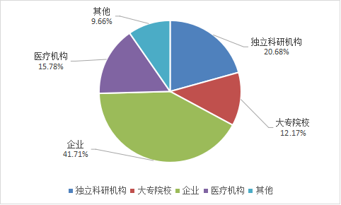 从统计结果看,企业、独立科研机构和医疗机构是所登记成果中的科研开发主体(三者之和约占79.50%)。