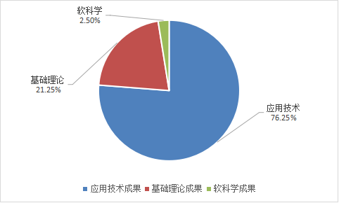 在2021年度登记的科技成果中,应用技术成果305项,占登记成果总数的76.25%;基础理论成果85项,占21.25%;软科学成果10项,占2.50%;应用技术类成果数量远远超过另外两类成果。见图6: