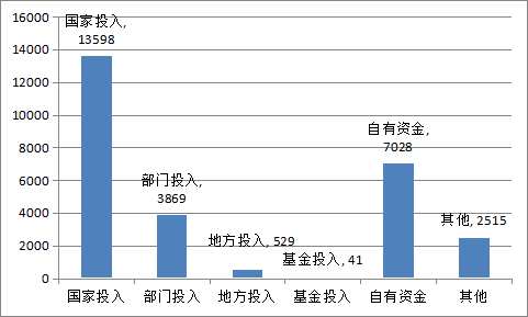 登记的269科技成果中,经费实际投入额27580万元。其中国家投入13598万,占投资总额49.30;部门投入3869万,占投资总额14.03%。地方投入529万,占投资总额1.92%;基金投入41万,占投资总额0.15%;由项目申报单位投入自有资金7028万,占投资总额25.48%,其他资金投入2515万,占投资总额9.12%。