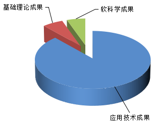 以应用技术类为主,146项成果中,应用技术成果129项,占88.36%;基础理论成果9项,占6.16%;软科学成果8项,占5.48% (见图1、表1) 。