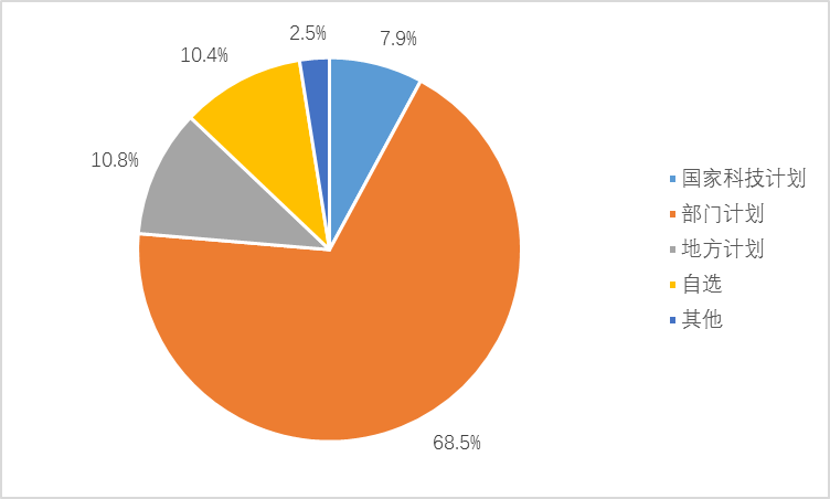 | 国家科技计划 | 部门计划 | 地方计划 | 自选 | 其他 | 总计 |