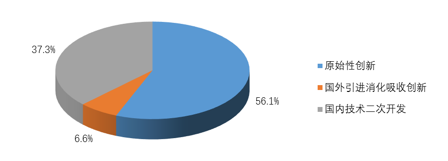 在228项应用技术成果中,“原始性创新”成果占成果总数的56.1%,“国外引进消化吸收创新”成果占6.6%,“国内二次开发”占37.3%(见表4)。