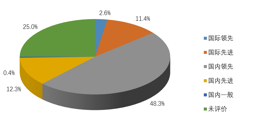 | 国际领先 | 国际先进 | 国内领先 | 国内先进 | 国内一般 | 未评价 | 合计 |