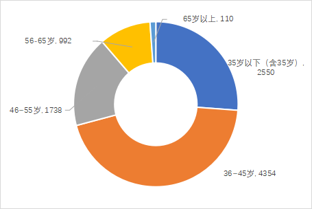 从年龄结构看,36-45岁研究人员是科研成果研发的主力军,占总人次的44.68%;其次为35岁以下(含35岁)的研究人员,占总人次的26.17%;46-55岁的研究人员,占总人次的17.84%;56-65岁的研究人员,占总人次的10.18%。