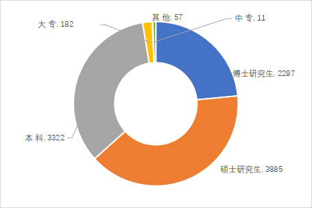 从学历构成看,科技成果完成人员主要集中在高学历水平。其中,硕士研究生占总人次的39.87%,本科占总人次的34.09%,博士研究生占总人次的23.47%。