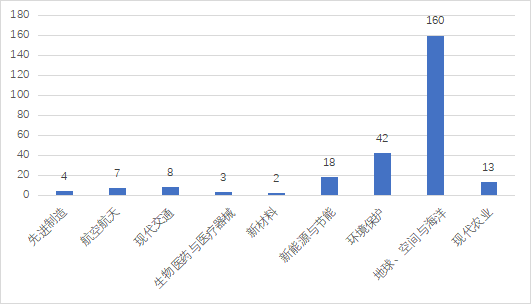 2022年度登记的应用技术成果中,高新技术领域科技成果达329项,占应用技术成果总量的55.39%。应用技术成果主要分布在地球、空间与海洋高新技术领域,占高新技术领域科技成果总量的48.63%;其次为电子信息,占高新技术领域科技成果总量的21.88%;再次为环境保护,占高新技术领域科技成果总量的12.77%。