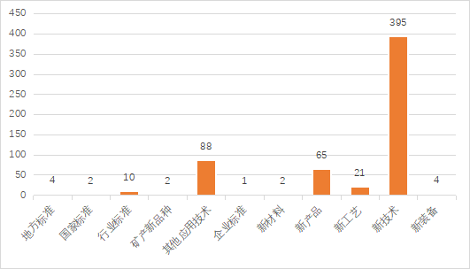 2022年度登记的科技成果共产出标准17项。从标准类型看,行业标准最为突出,占标准总量的58.82%;其次为地方标准和国家标准,分别占标准总量的23.53%和11.76%。