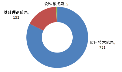 2022年江苏科技成果类别仍然以应用技术成果为主,共计731项,占82%,与往年持平;基础理论成果152项,占17%,软科学成果5项。