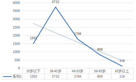 2022年江苏科技成果完成人的年龄结构依旧以55岁以下为主,占总人数的88%,其中36-45周岁的成为完成人的主力军:35岁以下(含35岁)1502人次,占总数的18%;36-45岁3732人次,占总数的47%;46-55岁1766人次,占总数的22%;56-65岁809人次,65岁以上的116人次。