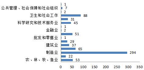 2022年江苏科技成果应用行业涉及17个方面,农、林、牧、渔业53项,采矿业22项,制造业294项,电力、热力、燃气及水的生产和供应业65项,建筑业37项,批发与零售业1项,交通运输、仓储和邮政业29项,信息传输、软件和信息技术服务业51项,金融业2项,房地产业1项,科学研究和技术服务业45项,水利、环境和公共设施管理业31项,教育2项,卫生和社会工作88项,文化、体育和娱乐业2项,公共管理、社会保障和社会组织7项,国际组织1项。
