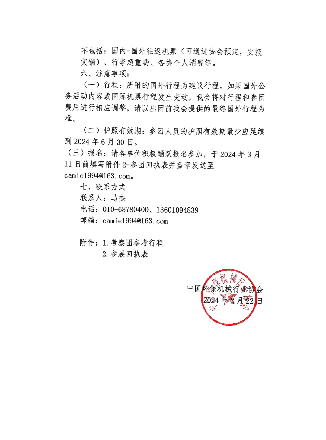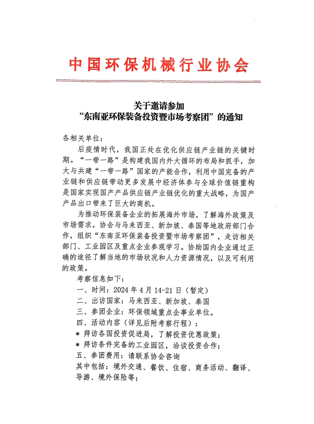 关于邀请参加东南亚环保装备投资暨市场考察团通知